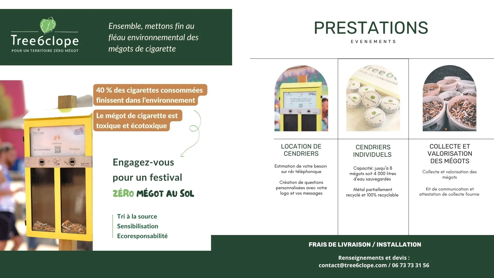 La Consigne Verte s’inscrit dans une démarche globale aux côtés de structures partenaires engagées dans la réduction des déchets de l’évènementiel. Ensemble, nous proposons une offre commune qui va au-delà du tri des biodéchets : collecte des mégots (Tree6clope), toilettes sèches (K-caravane)…